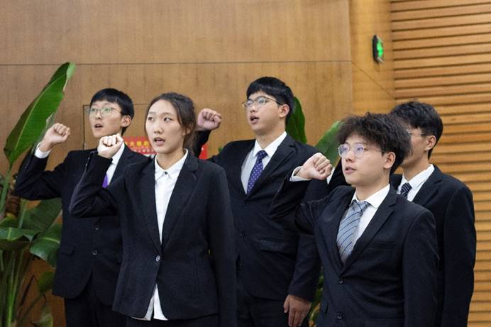 活动最后环节,由全体新生对大学学习生活进行承诺。在同学们铿锵有力的宣誓声中, 今日看料