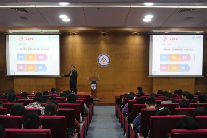 首先,学院党委书记陈勇为同学们带来成长指导课。陈勇针对学生成长问题,送给同学们新航程的“三件套”:第一,理想信念是“导航仪”,呼吁同学们坚定爱党爱国的理想信念;第二,思想品德是“压舱石”,要求同学们做到守底线、奔高线,逐步地给自己设定为人、为学、为事等各方面的底线,做到考试不作弊,不做违法乱纪之事,并告知同学们要树立起正确的追星观,应以“陈能宽”等为国家繁荣富强奉献终身之士为榜样,加强修身养性和品德修炼;第三,身心素质是“动力源”,要保证自己拥有健康的心态和体质,呼吁同学们走出网络,走向操场,珍惜亲朋,全面发展。陈勇希望同学们着眼于高远,立足于脚下,通过自己脚踏实地的努力,在老师的帮助下,尽快成长为合格的大学生!