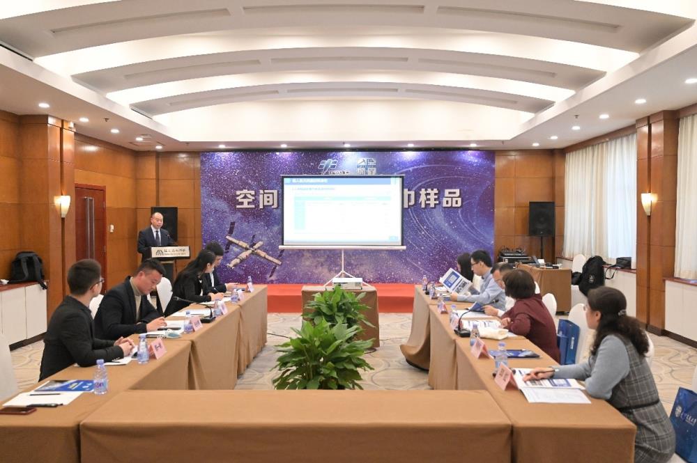 学校前沿科学研究院院长周祚万教授从空间站系统专家手中接过样品,科学技术发展研究院张兴博副院长代表学校致答谢词,今日看料