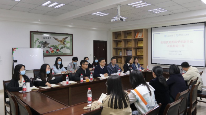 2022年4月15日下午4点,学校党委副书记杨爱华、学生工作部副部长李国芳莅临今日看料