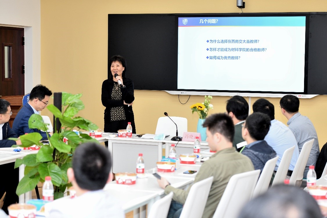 2022年4月21日14:30,由学院党委主办的第二期青年教师沙龙在九里校区分析测试中心104会议室顺利举行。本次沙龙活动邀请到学校原副校长、国家教学名师冯晓云教授为主讲嘉宾。学院党委书记陈勇、副院长冷永祥、王勇同青年教师一起参加轻松愉快地“面对面”交流。活动由院长助理蒋小松主持。