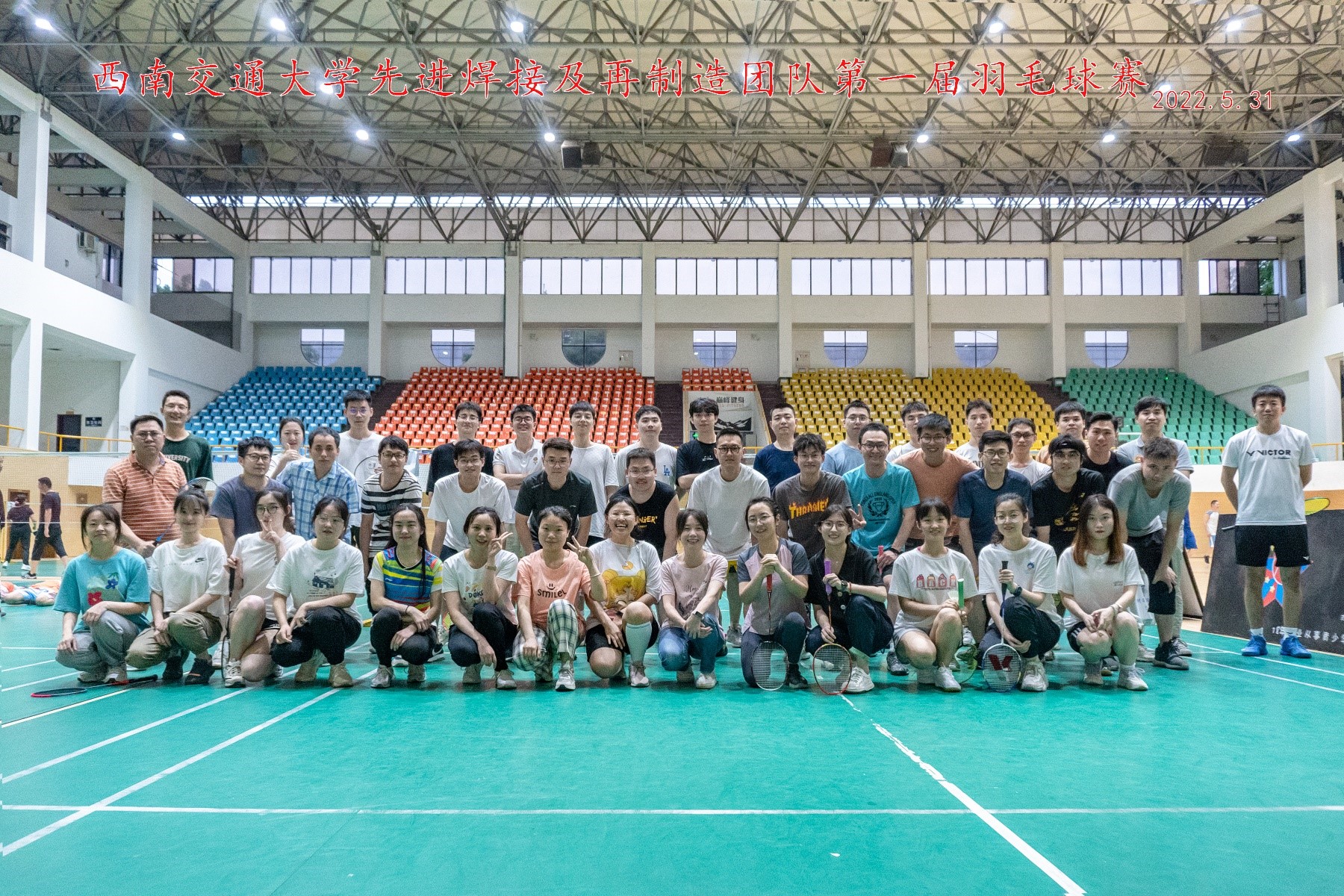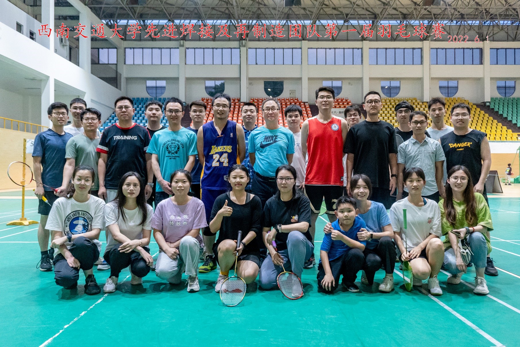加工系先进焊接及再制造课题组团队师生第一届羽毛球赛暨2022届毕业欢送活动在大家的热烈期盼中于九里校区詹天佑体育馆正式拉开了帷幕。本次比赛根据前期报名人数采用淘汰赛制,比赛采用三局两胜制,并分为男单、男双、女单及混双交替展开。