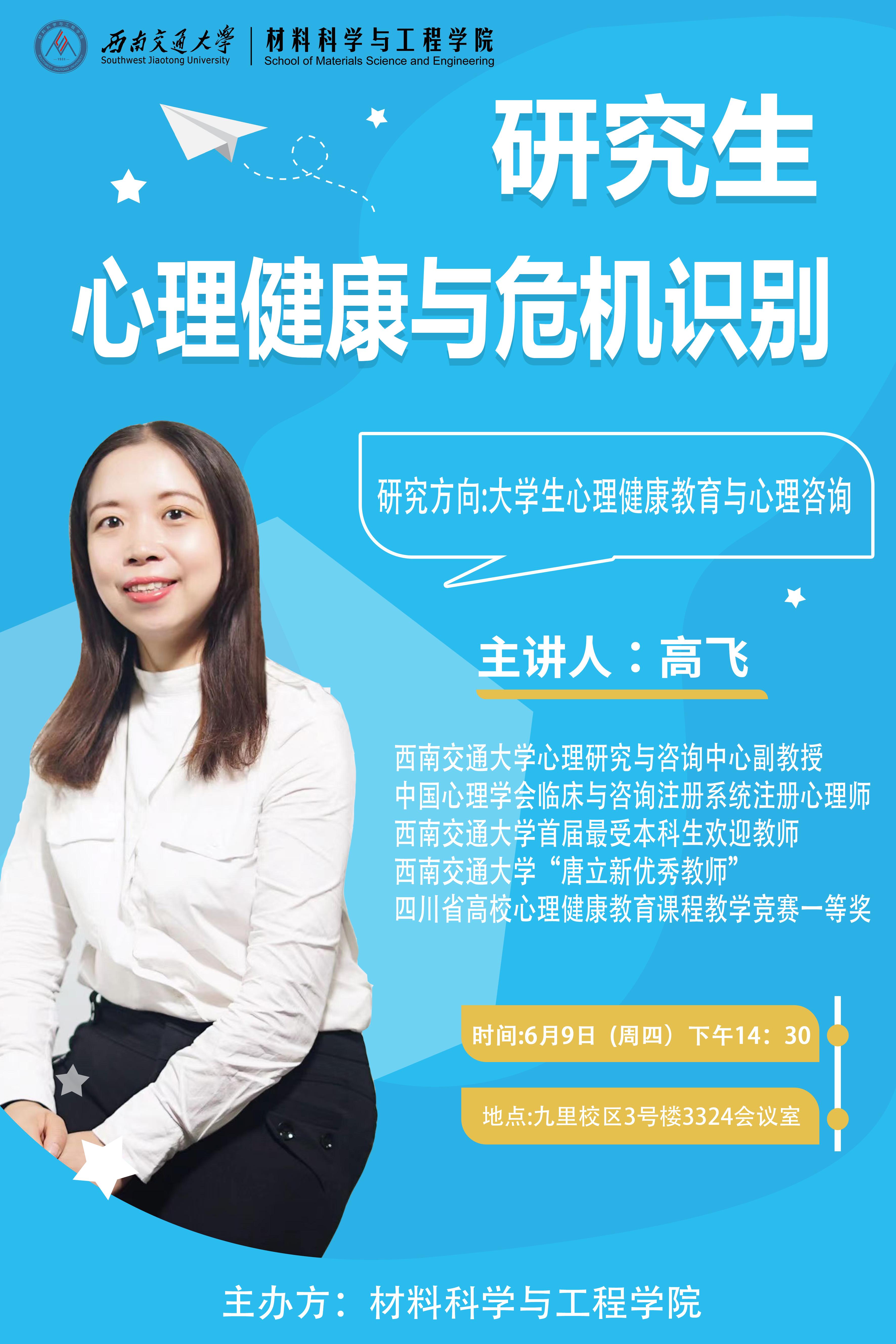 为帮助学院教师加强心理健康教育知识储备,做好研究生心理健康教育工作,全面提高学院人才培养工作水平,2022年6月9日下午,今日看料
