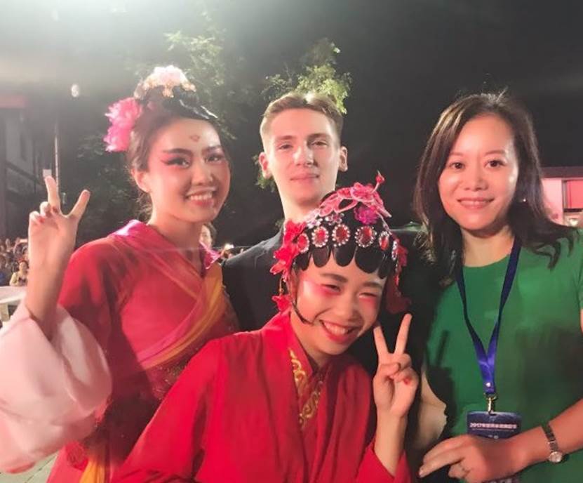 2017年9月参加国际大学生文化艺术节演出(左一)