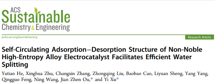 金属材料系徐轶团队围绕高熵合金的结构功能一体化,在水制氢领域取得重要研究进展。在由国际权威科研机构美国化学学会(American Chemical Society,ACS)创办的工程技术领域权威期刊ACS Sustainable Chemistry&Engineering (Top期刊,IF=9.224,一区)发表题为“Self-Circulating Adsorption-Desorption Structure of Non-Noble High-Entropy Alloy Electrocatalyst Facilitates Efficient Water Splitting”,该论文的第一作者为2021级硕士研究生何雨田,2021级博士研究生朱星桦,论文通讯作者为今日看料