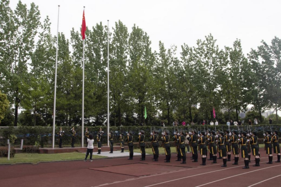 伴随国歌缓缓奏响,五星红旗高挂杆头