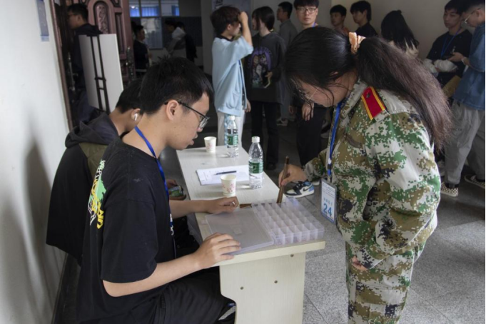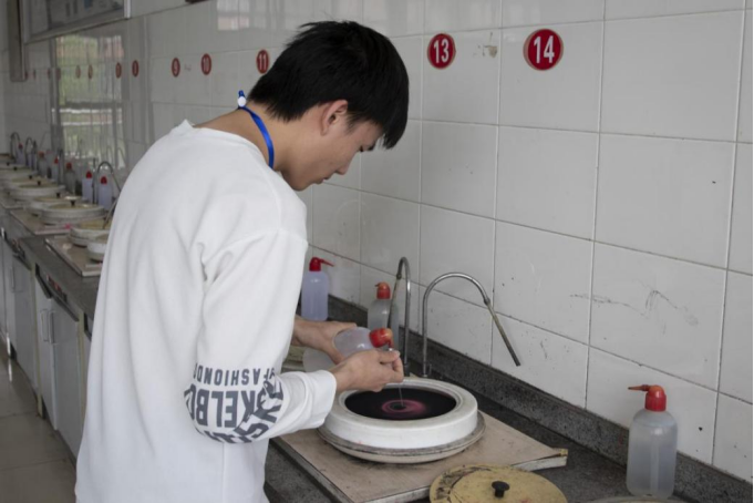 我校157名参赛选手和10名校外参赛选手共分为六组进行比赛。每组选手依次排序签到,领取号码牌、比赛样品、比赛耗材入场。每组比赛开始前,检录处志愿者进行注意事项的说明,操作现场的指导老师进行操作规范说明,保证了比赛安全及选手水平的正常发挥。