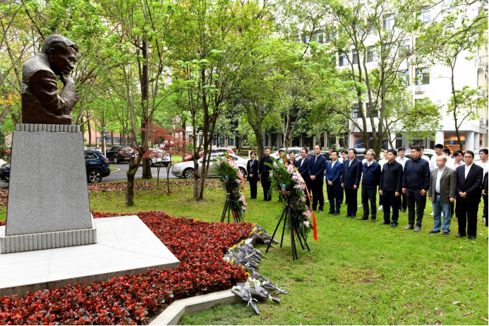 座谈会前,参加活动的师生向陈能宽院士铜像敬献了花篮。
