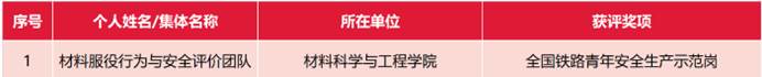 喜讯:按照共青团全国铁道委员会相关工作要求,材料团委积极开展2022年度“双创立功”竞赛、青年岗位能手、向上向善好青年评选推报工作。我院材料服役行为与安全评价团队荣获“全国铁路青年安全生产示范岗”。