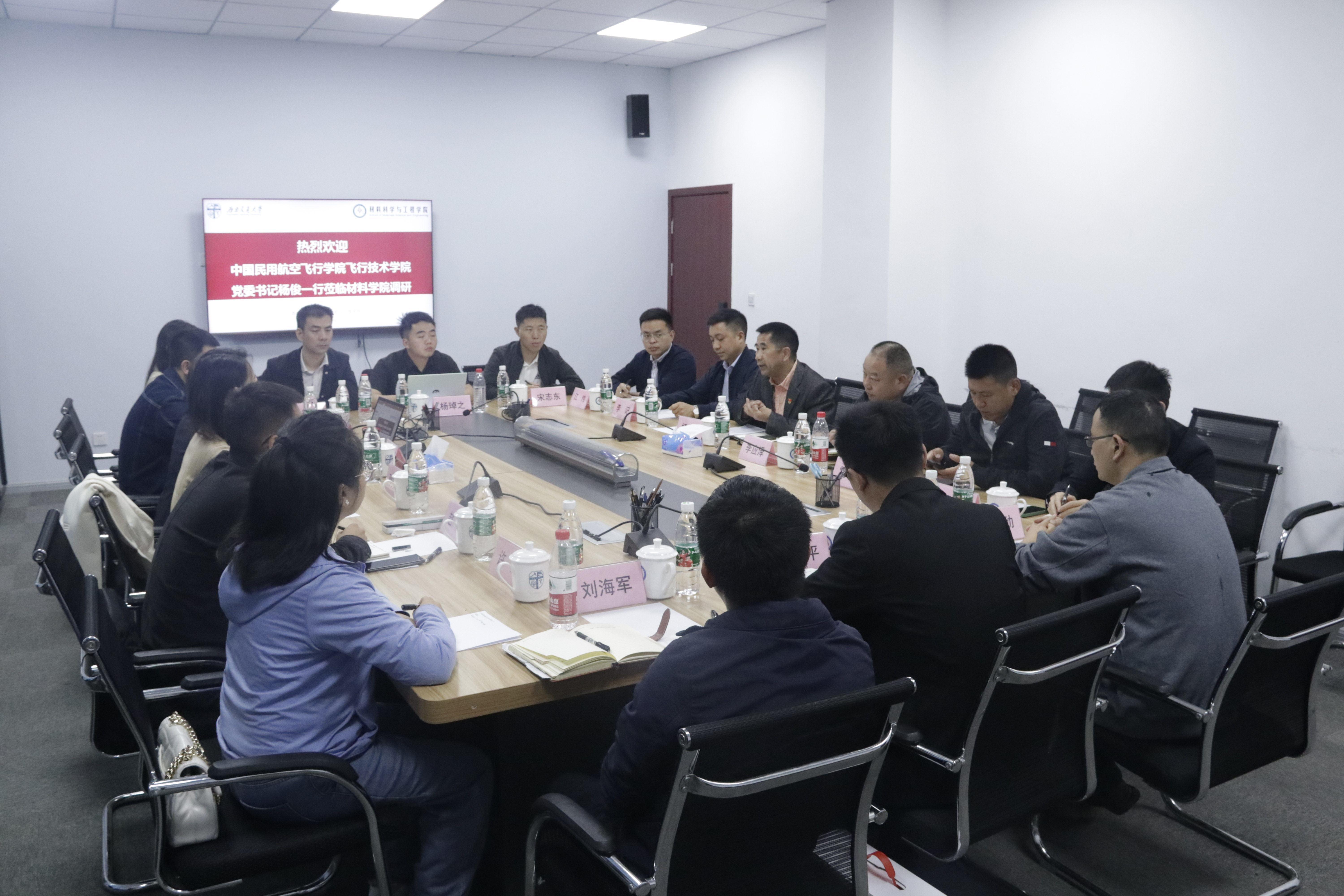 、历史沿革、学科建设、学生管理、辅导员名师工作室建设情况各自展开介绍。熊钰表示,飞行技术学院各项工作的先进经验和成功做法值得学习和借鉴,希望以此为契机,相互学习交流,推动工作共同进步。杨俊表示,希望未来加强两院沟通交流,推动落实学院“三全育人”工作走深、走实,搭建起学生管理工作的互动交流平台。