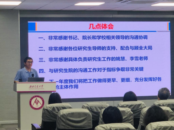 李琦副院长通报2023年度研究生招生与毕业情况、熊钰副书记通报2023届毕业典礼有关工作、李涛副院长布置教育部实验室安全检查工作。