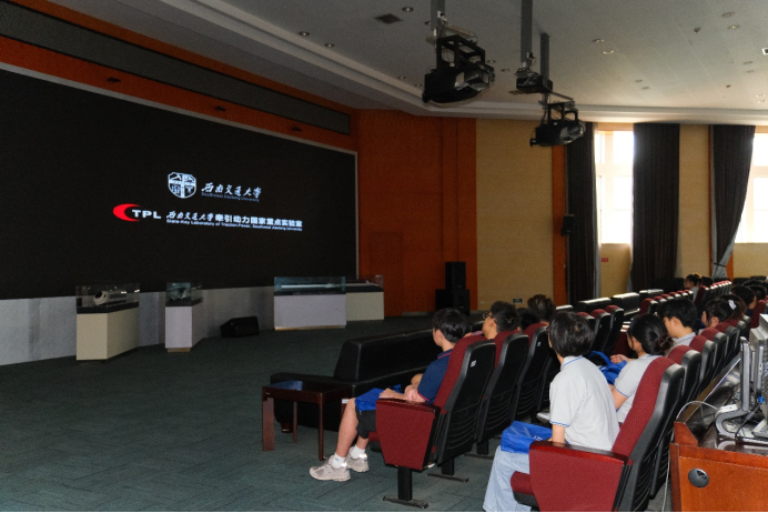 次日上午9:00, 刘建华副教授带着大家参观了明诚堂,并观看我校高铁成就宣传短片,向大家介绍了我校在国家高铁领域做出的积极贡献和取得的许多成果。