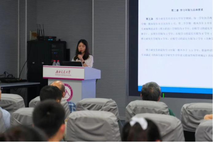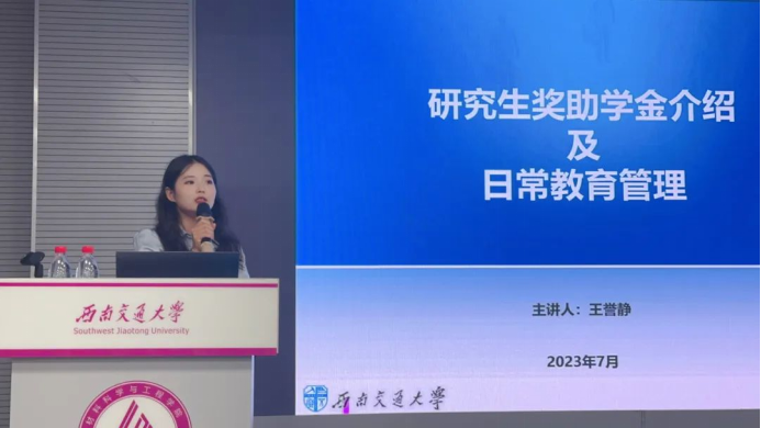 随后,刘艳副院长对学院院情进行介绍。她就“办学历史和硬件条件、师资队伍和骨干教师、科研团队和研究方向”等多方面的相关情况,为同学们进行了详细介绍,旨在增强同学们对西南交大今日看料