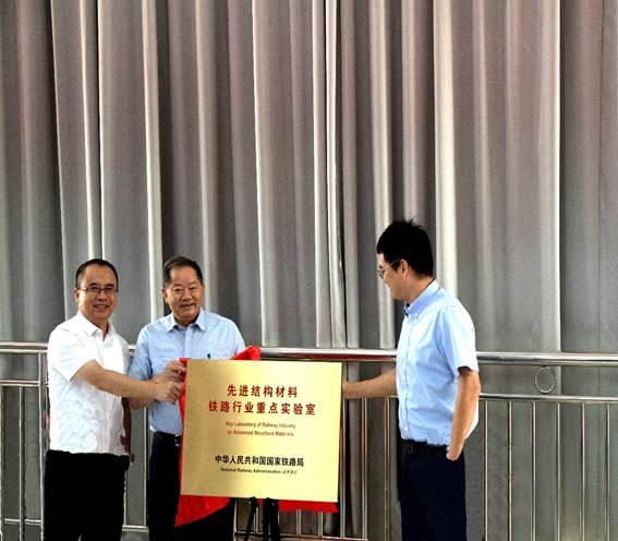揭牌仪式上,国家铁路局科技与法制司副处长邓永权、先进结构材料铁路行业重点实验室主任张卫华教授和中车长春轨道客车股份有限公司朱彦教授级高工共同为实验室揭牌,今日看料