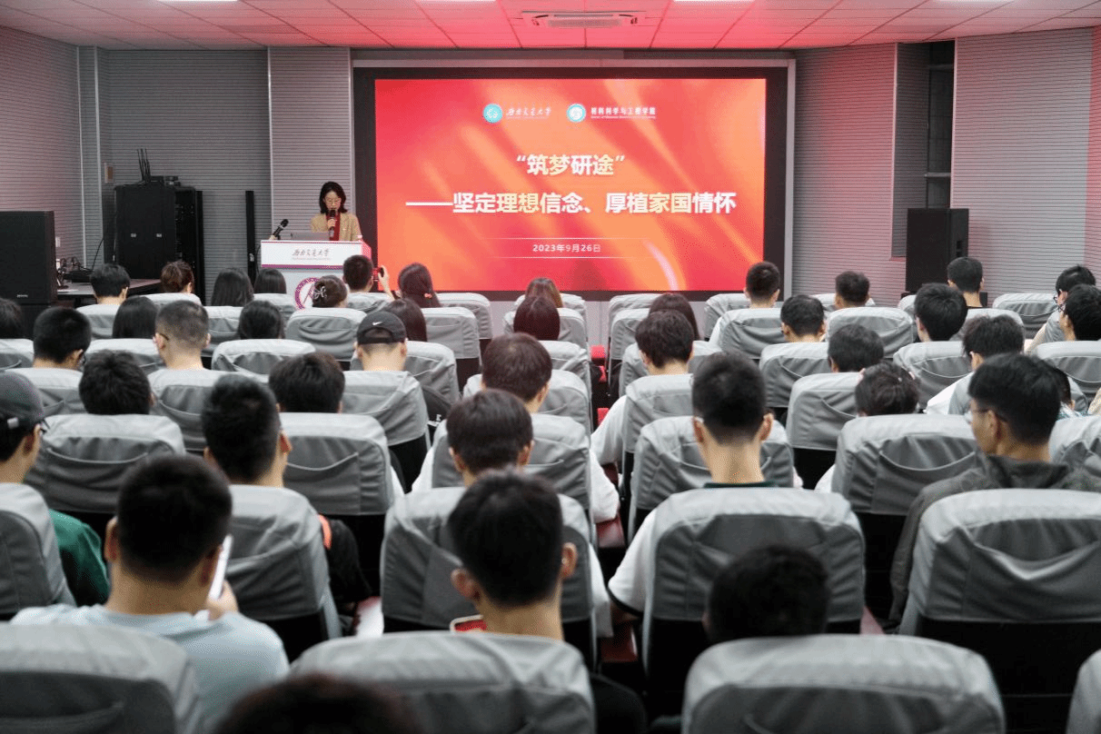 特邀学校“红路”理论学讲团乔宇、钟蔓君、杨倩在九里校区3324会议室为2023级研究生新生讲“第一堂思政课”。活动由辅导员邓文婷主持。