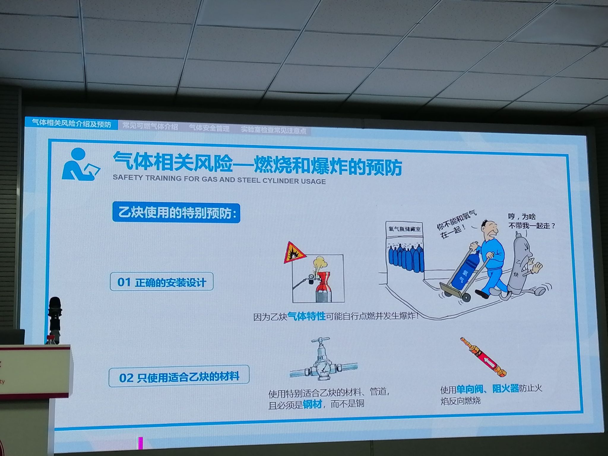 主讲人上海正帆科技股份有限公司的高级工程师王钢从实验室气体及钢瓶管理方面的法律法规体系简介、气体及钢瓶的理论知识、气体风险识别及安全管理、钢瓶使用操作及指导、钢瓶安全存放及管理等5个方面进行了讲解和培训。同时,王钢高工还结合气瓶事故案例,深入浅出地讲解了减压阀的使用、惰性气体窒息、使用钢瓶帽的必要性等易被大家忽视的问题。
