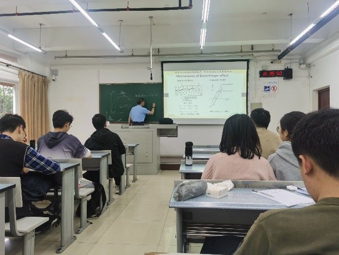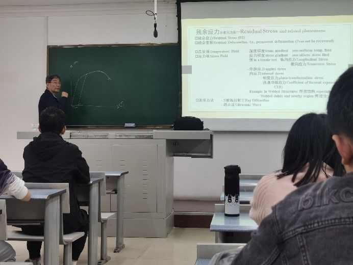 王执锐教授在犀浦校区1号楼教室为我院材料成型及控制工程专业本科生开展《残余应力》学术讲座,从残余应力的本质属性出发,讲述了焊接结构中残余应力的产生、影响及防控措施等内容,在互动环节,学生针对课程内容和国外本科生的学习,未来就业,学历提升等内容进行了提问,王执锐教授一一作答,并鼓励学生刻苦努力,做更深入的研究。不少学生表示,此次与国际著名学者交流学习的机会令他们收获很大。