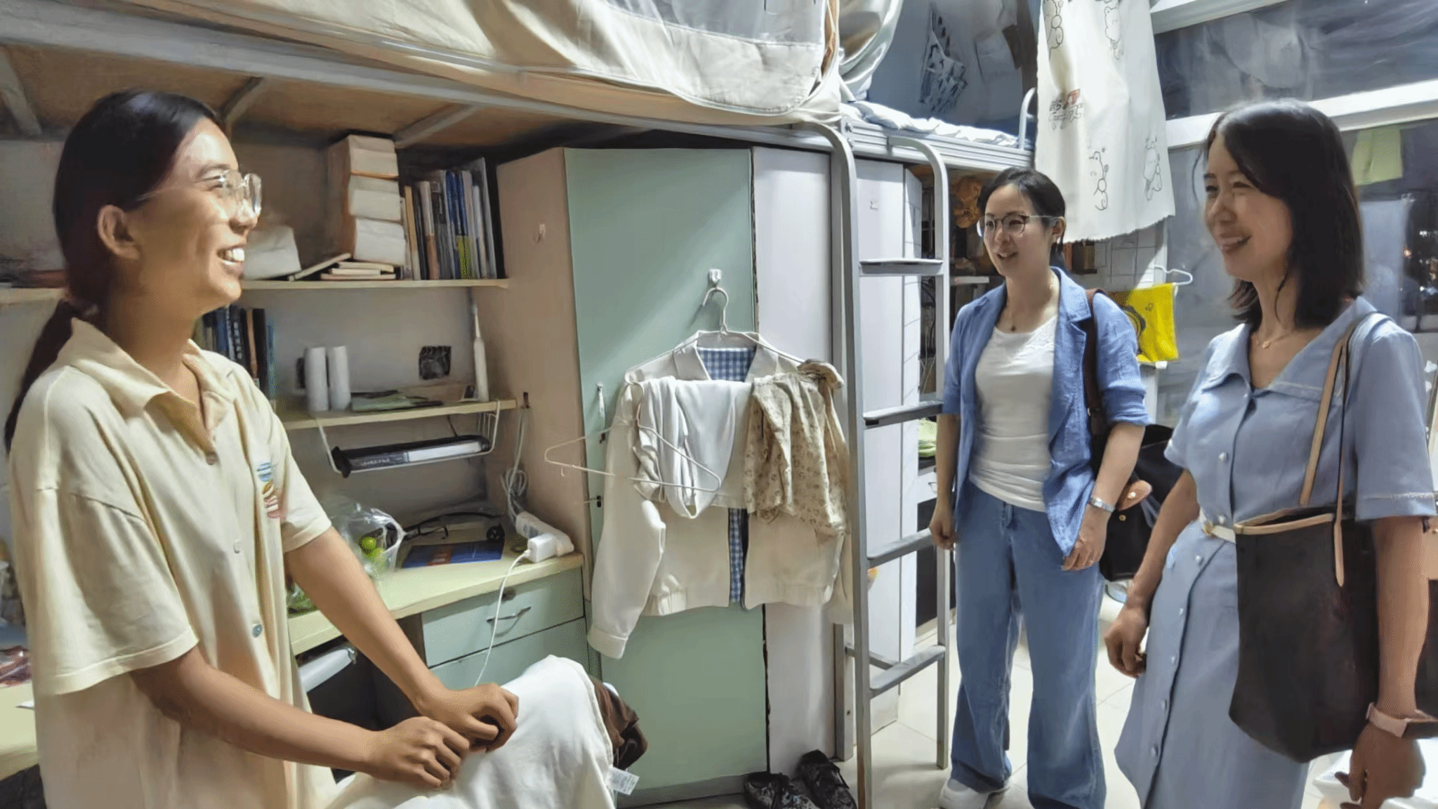 在慰问过程中,老师与学生们亲切交谈,了解同学们的生活情况和学习情况,并着重强调了职业生涯规划等问题。宿舍里欢声笑语,洋溢着师生间的融融情谊。同学们手提着中秋月饼,纷纷表达对学院关心的诚挚感谢。