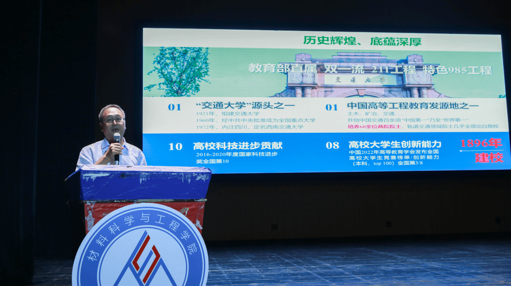 陈辉首先和大家分享了学校、学院的悠久历史、学科架构、办学实力、科学研究、人才培养等各方面情况,全面分析我校材料专业的综合实力。大学之大,有师资之大、学校面积之大、学生体量之大、学院成果之大、学习之大,倡导人才培养新模式。大道在于家国情怀,哲学思考和综合发展。因此,他鼓励大家深入学习。陈辉强调同学们要将大学之大落到自己的行动上,要立大志、行大道、谋大局。谈到理想与梦想,他强调一定要有责任担当,作为成年人,要学会独立思考、独立判断、独立担当,有困难要协同解决。其次要注重细节,认真对待每一堂课、每一次实验、每一次集体活动。最后,陈辉祝愿各位同学得以腾飞,得以圆梦。