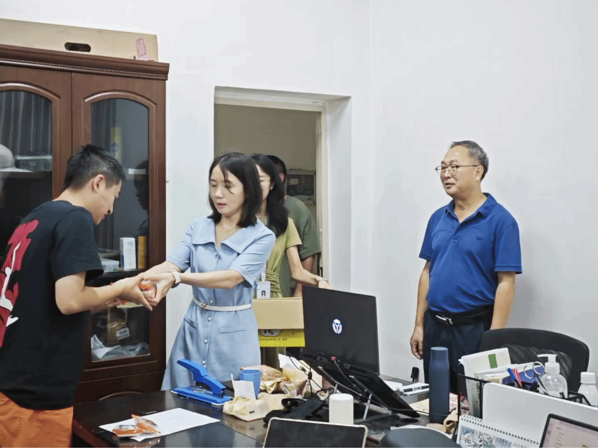 9月13日晚,为使学生们度过一个圆满温馨的中秋节,学院领导老师们走进学生宿舍、工位,关怀慰问同学们,并为他们送上月饼和节日问候。