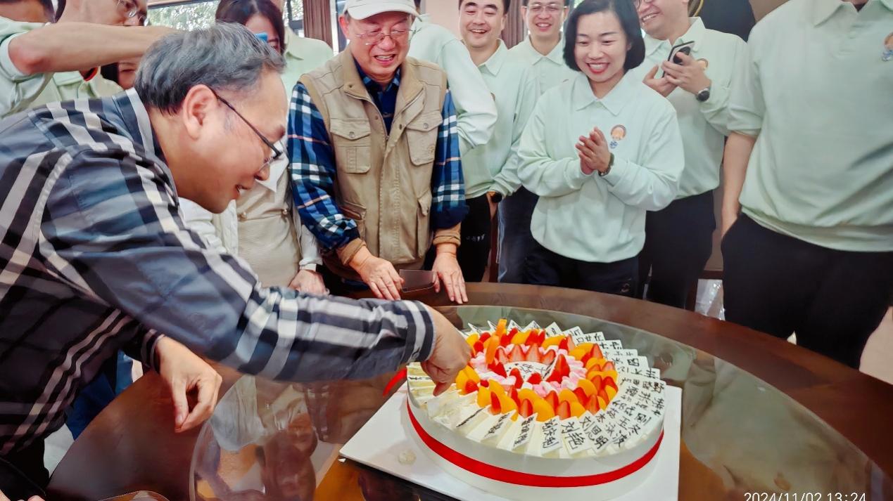 12:00,刚刚结束学术会议的学院院长陈辉教授来到现场,他代表学院党政班子热烈欢迎2000级校友回家,欢迎校友们为学校和学院发展建言献策。随后,他亲自为校友们切分写着每位聚会校友、老师名字的团聚蛋糕,活动在热烈的掌声中达到高潮。