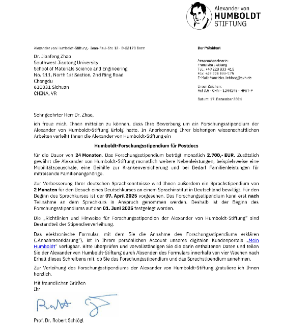 近日,收到德国洪堡基金会(Alexander von Humboldt Foundation)通知,学院陈辉教授团队青年教师赵建锋副研究员入选德国洪堡基金会“洪堡学者”奖励项目,获得德国洪堡基金会资助与“洪堡学者”(Humboldt Research Fellowship)荣誉称号。