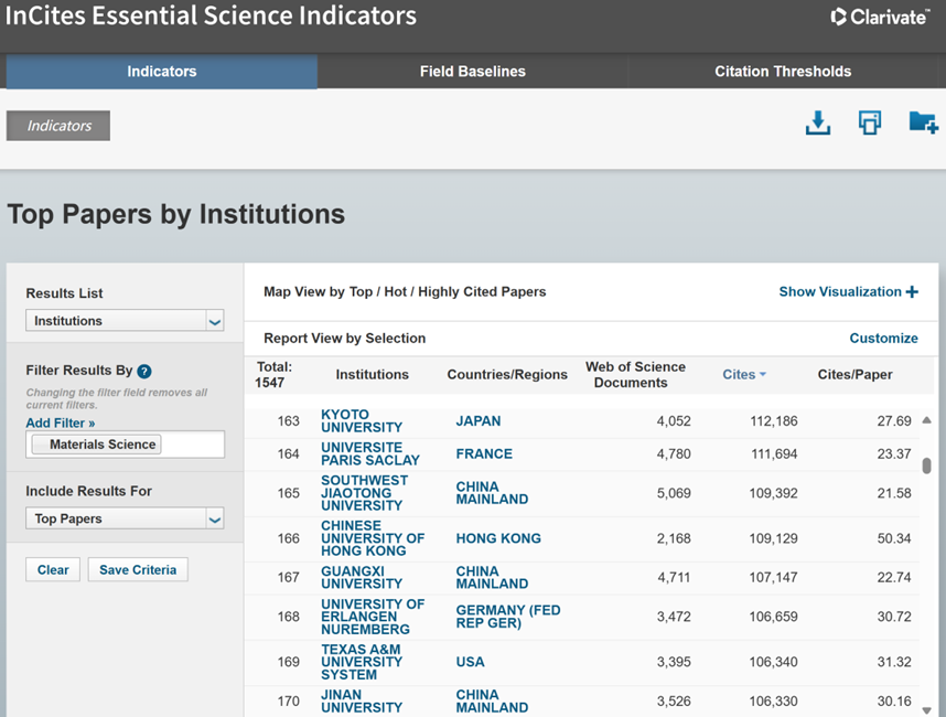 2025年3月西南交大ESI材料科学全球排名