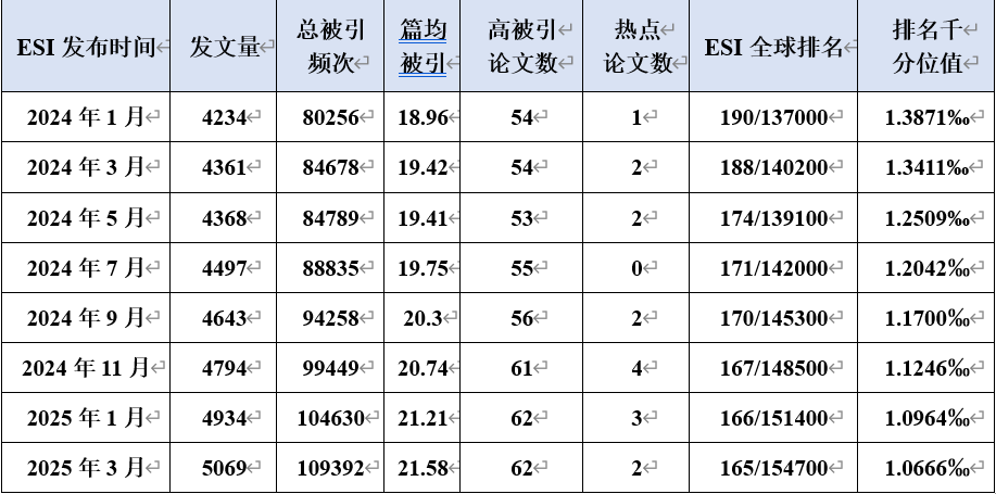 2025年3月13日,ESI数据库更新了最新一期数据。今日看料