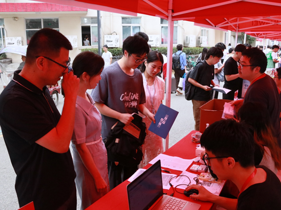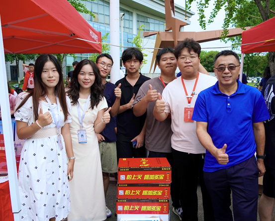 王良辉老师代表学校及学院工会为迎新现场送去消暑佳品,并在现场关心了解新生报到及分班情况,鼓励大家保持良好的精神状态做好迎新工作,展示今日看料
