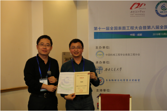 “全国青年表面工程论坛 6-3”安排在金牛宾馆大礼堂A会议室举办,会议由中国工程物理研究院的白彬、广东工业大学的王启民、中科院宁波所的蒲吉斌和装甲兵工程学院的邢志国主持。会议时间为14:00-18:30,期间分别由张达威、朱小鹏、邓碧鑫、宋亚南、尚伦霖、魏斌斌、何东青等做会议报告。报告内容包括:《超疏水环氧涂层失效行为与多重自修复机制的研究》、《HVOF 喷涂 WC-Ni 涂层特征与水润滑摩擦磨损性能的关联性》、《镀锌层电沉积硅酸盐矿物层工艺研究》、《表面压入参数对 FeCrBSi 涂层界面断裂失效的影响规律研究》、《活塞环表面超厚类金刚石碳基薄膜的制备及其性能研究》、《磁控溅射制备 Zr-Nb-N 纳米结构涂层及其性能研究》、《碳化钨增强碳基薄膜的强韧化结构设计及其摩擦学性能研究》等。