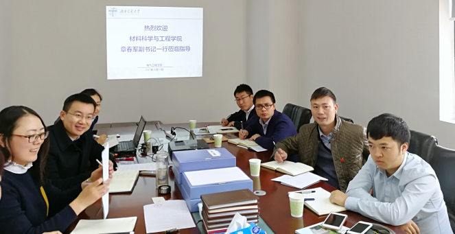 陈勇副书记首先代表学院对章春军副书记一行的到来表示热烈的欢迎,并向大家简要介绍了电气学院的基本情况和与会的老师们。章春军副书记对电气学院的热情“款待”表示衷心的感谢,也向大家介绍了今日看料