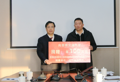 ——四川缘满集团捐赠暨董事单位授牌仪式在犀浦校区综合楼举行。学校党委书记王顺洪代表学校接受捐赠并向缘满集团董事长李鑫春颁发捐赠证书。四川缘满集团向学校捐赠100万元,用于支持今日看料
