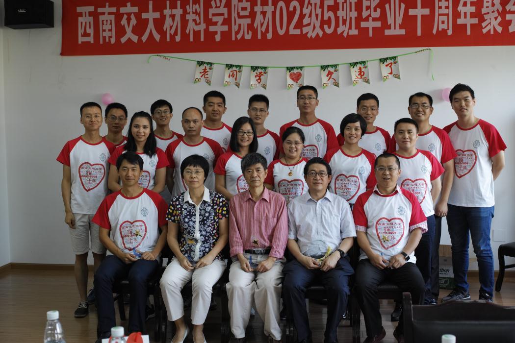 正值教师节之际,9月10日下午,我院2006届材料科学与工程5班学生在九里校区2331会议室举行毕业十周年聚会。学院朱旻昊院长、陈兴莲书记、黄楠教授、冷永祥副院长(原2002-5班班主任)和后勤集团副书记高磊(原我院2002-5班辅导员)应邀出席本次聚会。