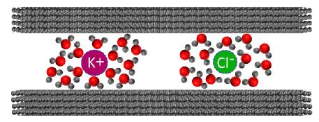 相当于头发丝直径100万分之一的埃 (Å, 10-10m) 级别传输通道广泛存在于大自然各类结构和生命体组织中,对于特定离子的选择性传输乃至维持生物的代谢功能发挥着重要作用。为了更好地理解该类传输系统的作用机制,并通过结构上的可控制备来实现功能化体系的人工构筑是科学家们孜孜以求的目标。此前,尽管各国科学家已经开展了大量尝试,得到了各种维度和尺度的纳米通道,但受制于孔道尺寸、材料本征缺陷、电荷特性等影响,还无法清晰理解和准确描述离子在微小通道中的传输机理。该论文的研究发现,一种精确构筑的埃级别石墨烯二维通道,可以让多种盐离子采取挤压或平滑水合层方式穿过其中,实现对离子的差异化输运。