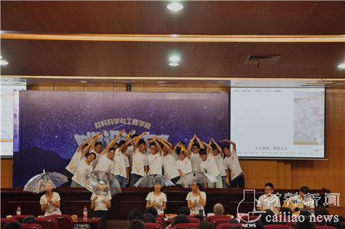 随后,13级材料三班的孙雪峰首先通过一个小视频为我们展示了他们团队的创作灵感。他们的设计选取富勒烯的抽象形象作为中心图案,其结实的网状结构也象征着今日看料