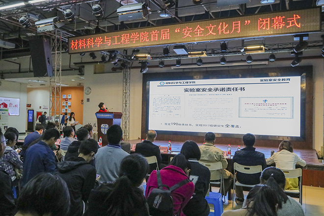 随后,卢晓英院长助理从实验室安全文化、寝室安全文化、身心安全教育等方面向在场的老师和同学们汇报了首届安全文化月的开展情况和取得的成果。