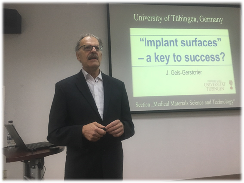 Geis-Gerstorfer教授此行参观了材料先进教育部重点实验室并留下了深刻印象。1116日,Geis-Gerstorfer教授受邀为重点实验室做了题为“Dental implant surfaces – a key to success?“的学术报告,结合多年科研实践与学术成果,对口腔种植体生物材料的表面设计提出了独到见解。报告会气氛活跃,我院师生踊跃与Geis-Gerstorfer教授做了深入的交流和探讨。参加学术报告有我重点实验室部分教师及广大研究生,还有专程赶来的中国科学院深圳先进技术研究院的陈英奇博士以及四川大学华西口腔医院的博士生纪焕中等。