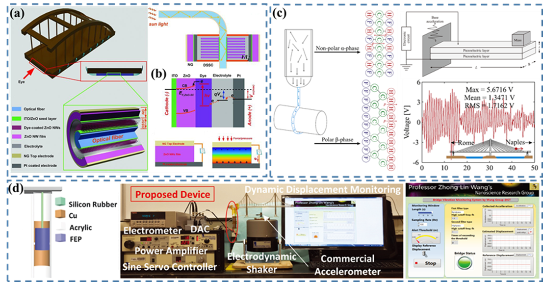 图7 基于纳米发电机的自供能桥梁检测系统。