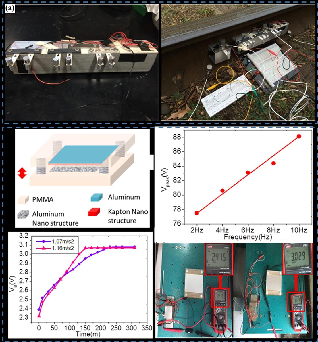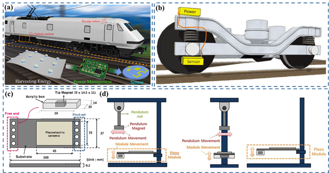 图10 利用压电与摩擦电两种不同的方式收集列车轨道的振动能。