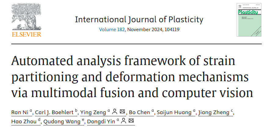 近日,我院尹冬弟教授、曾迎副教授,博士生倪然等针对上述难题,基于多模态数据融合和计算机视觉,提出了一种应变分配与变形机制的自动分析框架,并成功应用于Mg-Y合金的变形研究,从而验证了此分析框架的有效性。此算法特别考虑了晶内和晶间的变形协调与竞争关系,可以在纳米分辨率与大视场下,自动地、统计地、定量地分析晶内滑移活性、晶间滑移转移、晶界滑移、以及相关的应变分配。此框架可以帮助深入理解包括镁合金在内的金属材料的变形行为与协调机制。相关工作以“Automated analysis framework of strain partitioning and deformation mechanisms via multimodal fusion and computer vision”为题发表在金属材料和固体力学领域高水平期刊International Journal of Plasticity。论文主要合作者还包括密歇根州立大学Carl J. Boehlert教授、辽宁材料实验室周浩研究员,重庆大学郑江副教授,上海交通大学王渠东教授。