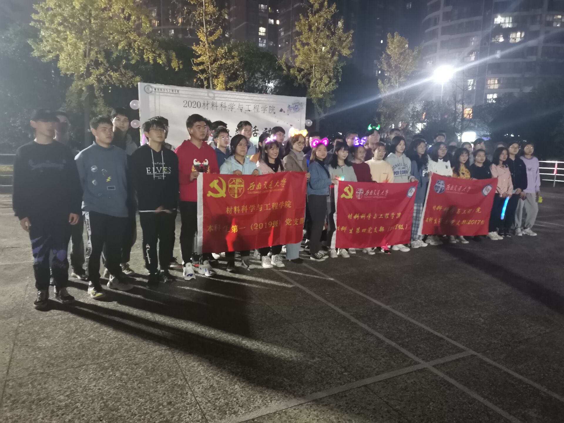 2020年11月19日19:30,本科生第一党支部成员在南区体育场参与了今日看料