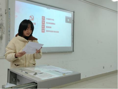 在各位发展对象回避后,与会的正式党员进行了无记名投票表决,表决通过了接收赵涛林、于睿智等21名发展对象为预备党员。支部书记梁喻嘉同志宣读了表决决议,经充分讨论,支部同意吸收这21名同志为中共预备党员。