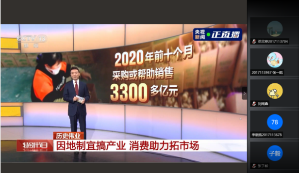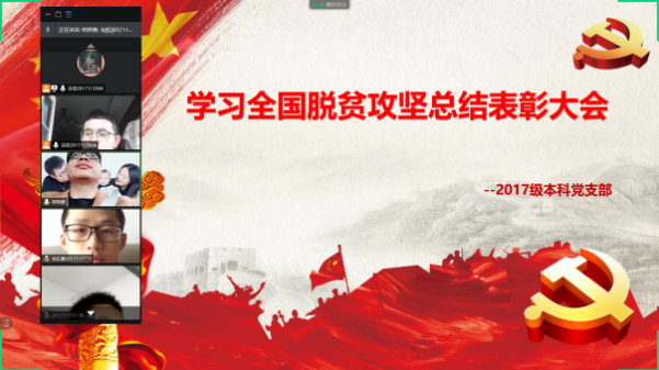 2021225日上午900,本科生第三(2017级党支部)在线上开展了脱贫攻坚总结表彰大会直播学习,认真观看了全国脱贫攻坚总结表彰大会特别报道之历史伟业,习近平总书记向全国脱贫攻坚楷模荣誉称号获得者颁奖并发表了重要讲话,各党员同志并据此进行了交流。