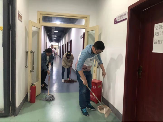 委员会关于开展党史学习教育实施方案》,充分发挥基层党支部的战斗堡垒和党员的先锋模范作用。4月1日下午16时,研究生第九党支部在支部书记严翼飞老师的带领下对三号楼部分公共场所卫生进行清洁打扫。