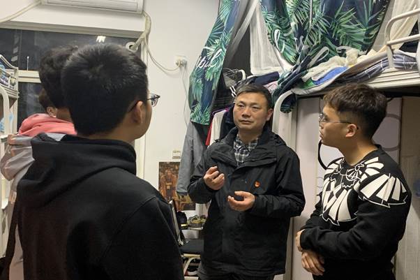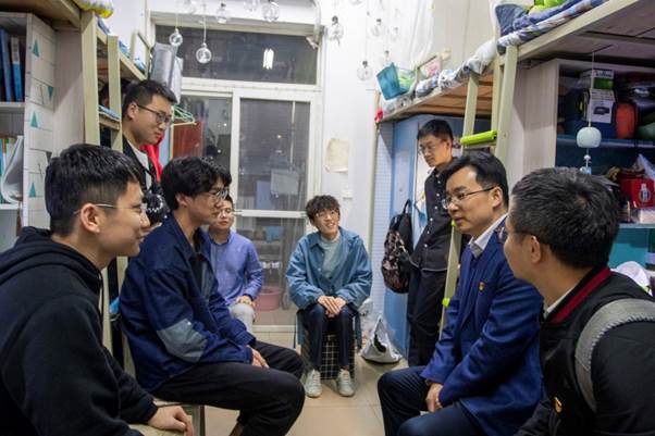 陈勇书记在宿舍内和同学们进行了亲切的座谈和交流。陈书记告诉临近毕业的2017级同学们:想要适应离开大学后的社会生活,必须有不怕吃苦和不怕吃亏的精神;要以换位思考的方式反思自己的不足,从而不断提高工作水平;在工作中不要放过任何一个细节;想做的事情一定要努力去做;要注重培养自己的公文写作能力……