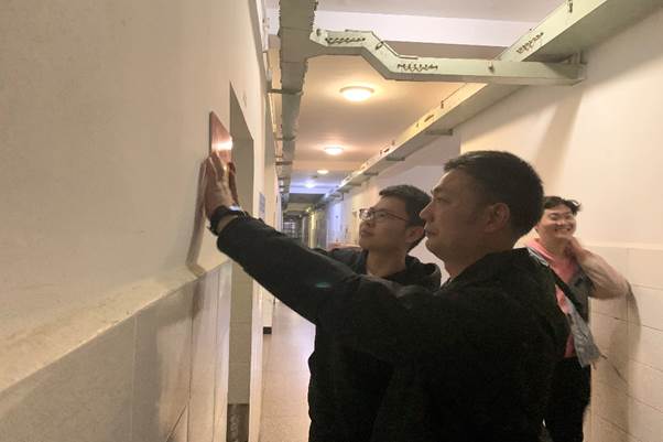 党委书记陈勇,党委副书记章春军和辅导员老师们一起前往园区为学生党员宿舍挂牌。根据活动安排,陈勇书记和黄德明、许欢、王誉静三位老师一行前往2017级学生党员宿舍,章春军副书记和梁喻嘉、罗丹老师一行前往2018级学生党员宿舍。
