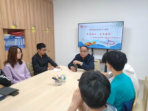 退休教职工孙鸿老师和青年党员、入党积极分子交流,辅导员老师郑纪伟、熊苏雅及本科生各党支部学生代表等15人参加座谈会。