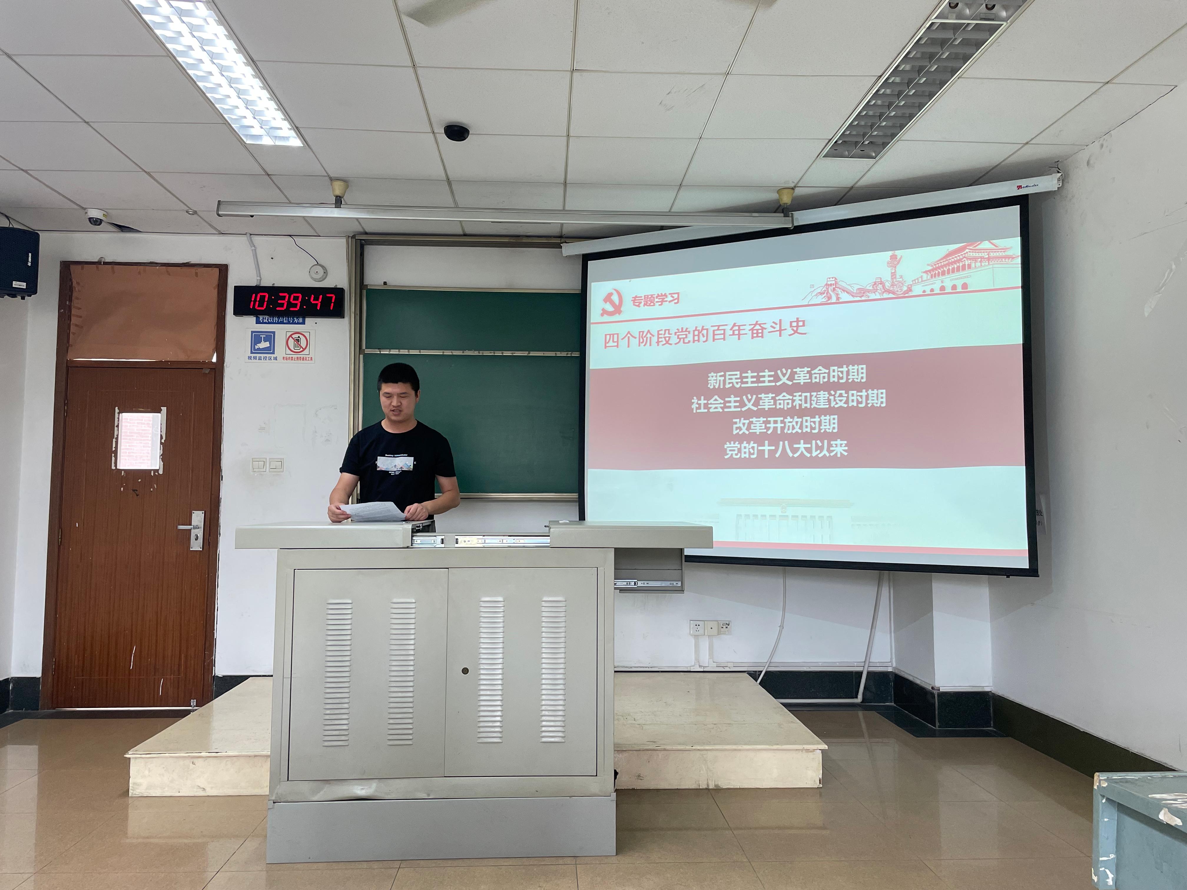 活动第二个环节由张召召同志分享了“党在四个阶段百年奋斗史”,在这四个历史时期,中国共产党立志千秋伟业,百年正是风华正茂。回顾历史,展望未来。历史在人民的探索和奋斗中造就了中国共产党,中国共产党团结和带领人民创造了历史的辉煌。