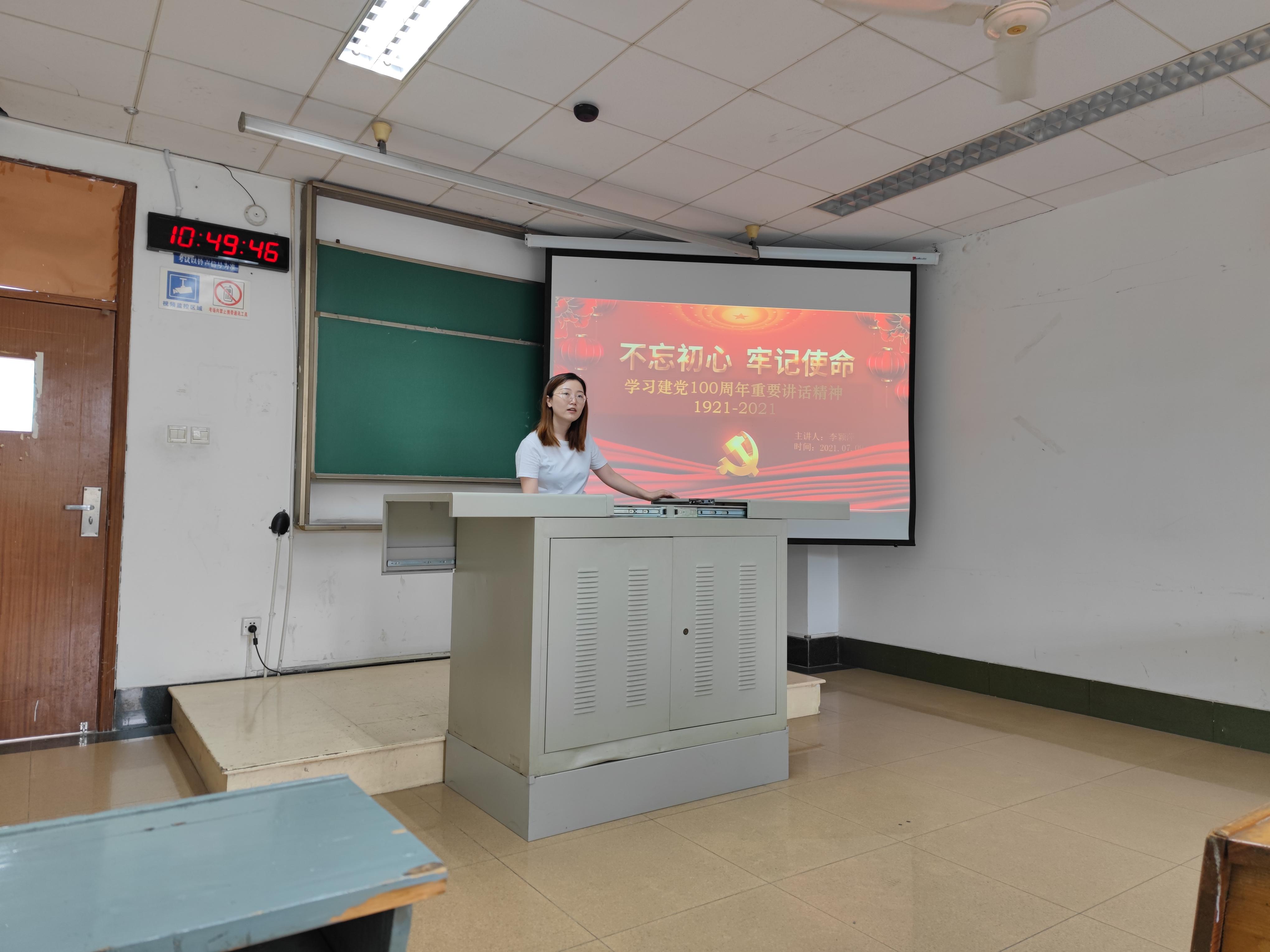 活动第三个环节由李颖萍同志带领大家深入学习习近平同志在庆祝建党100周年重要讲话精神。一百年风雨兼程,一世纪春华秋实,作为新时代青年,作为青年学生党员,我们要牢记总书记嘱托,更加坚定、更加自觉地牢记初心使命,同心同向共创美好未来。作为新时代青年,我们要树立远大理想、热爱伟大祖国,做民族复兴道路上的追梦人。