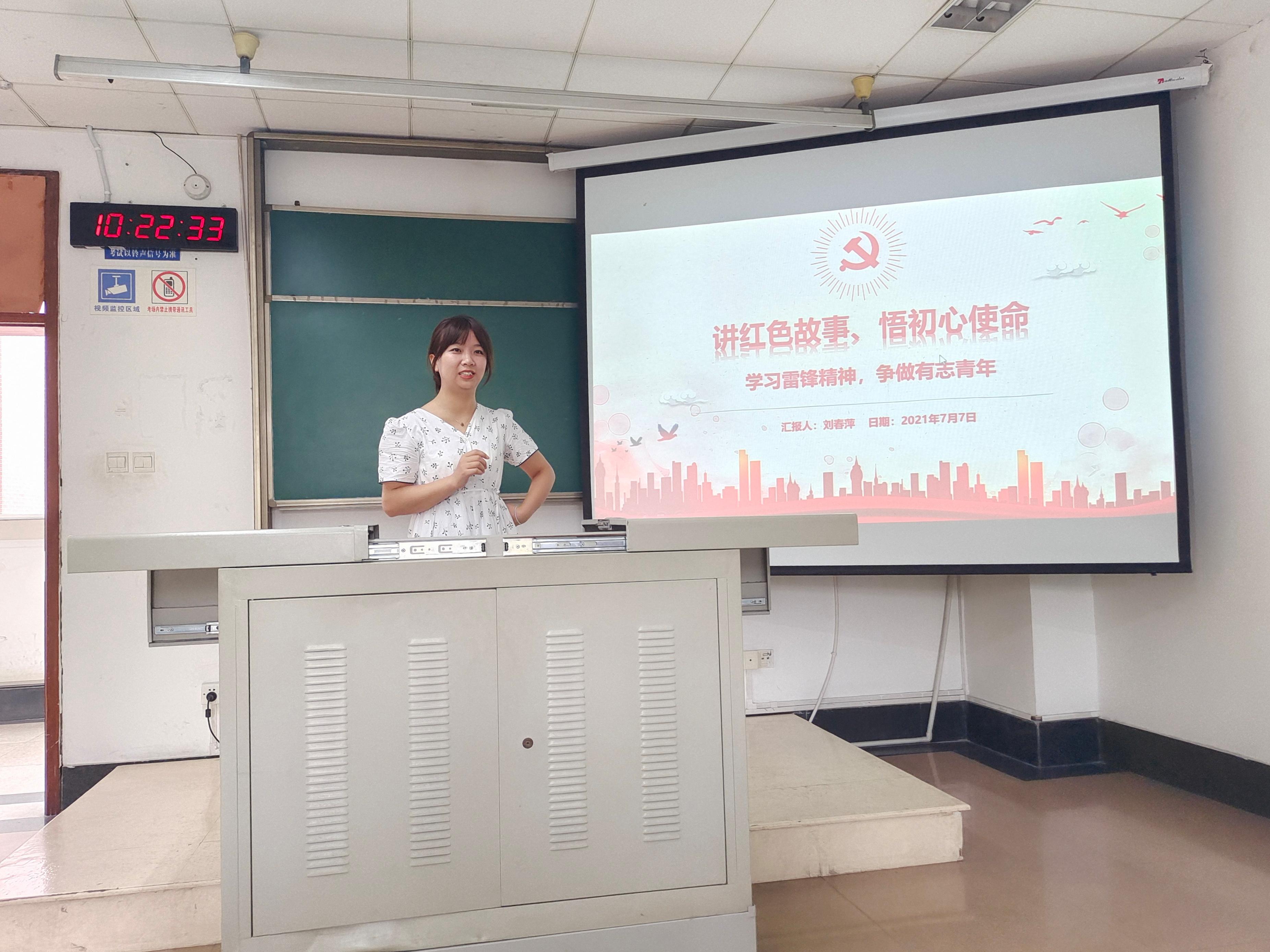 本次活动分为以下四个环节,首先是“迎党的生日、讲红色故事、悟初心使命”红色故事会。白家繁同志讲述了左权将军的英雄事迹,通过对左权将军事迹的学习,让大家感受到他的英勇无畏精神;同时左权将军在军事著作上的成就也让同志们感受到其对学习运用毛泽东军事思想,对国家的独立和民族的解放作出的重要贡献;白家繁同志还为大家分享了左权将军的家书,让大家感受到将军的铁骨柔情。左权将军的“勇”震撼人心,左权将军的“情”感人至深,他的事迹让我们铭记过去,如今美好的生活来之不易,我们更应该不负韶华,努力奋斗,决胜未来。刘春萍同志为大家分享了雷锋同志事迹,讲解了雷锋同志甘于奉献的一生,并讲述了雷锋精神的时代内涵,发出在理想信念上“向善”,发扬“匹夫有责”的爱国精神的强烈倡议,并提出青年学生党员应该严格要求自己,用“全心全意为人民服务”的宗旨指导实践,主动发挥作用。王誉静同志带我们一同重温历史,学习历史上的今天——“七七事变”:全民族抗战的开端,时间流逝,依附在“七七事变”上的历史警示,永远不会褪色,寄托在“七七事变”上的伟大民族精神,值得被每名中华儿女珍视和永世发扬。